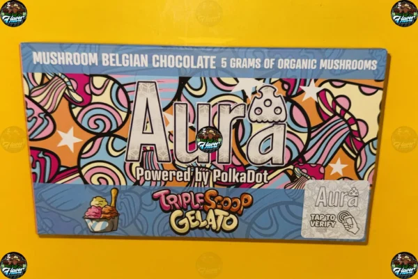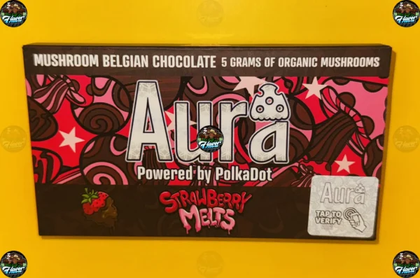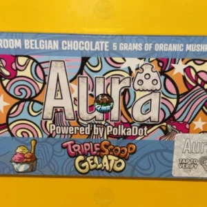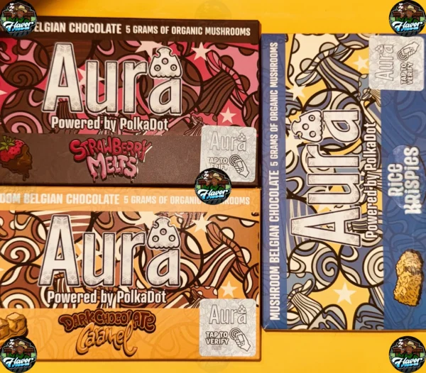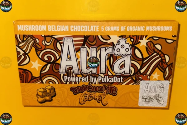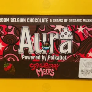 AURA BARS BY PolkaDot are Belgian chocolates infused with 5 grams of magic blend they can help reduces stress and depression. PolkaDot Mushroom Belgian Chocolate Couverture is not only delicious, but also the equivalent to 5g of Psilocybin & Psilocin from Psychedelic Mushrooms. Aside from the full-fledged high of eating a number of chocolates, these are helpful for those who are fans of microdosing as the chocolate hide the fungi flavor and you can eat 1 square at a time.
